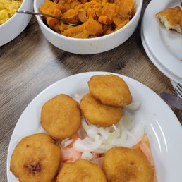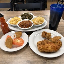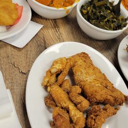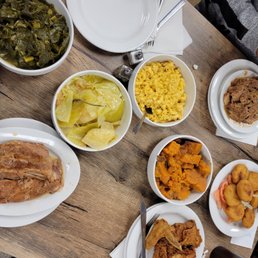 Stopped in to check out this soul food place as it was recommended by a coworker and it was great! We truly enjoyed the Fried Fish, Ribs( so tender they truly do fall off the bone) and you don't even need any sauce ( I didn't care for the bbq sauce provided), the smothered chicken was great as well and very tender. We enjoyed the corn casserole very delicious and tasty, the greens were great, didn't care for the cabbage of Mac and cheese but the sweet potato was decent. The service was great and quick and we truly enjoyed the young lady that waited on our table. The restaurant was very clean and roomy. Support this business it's definitely worth it!
